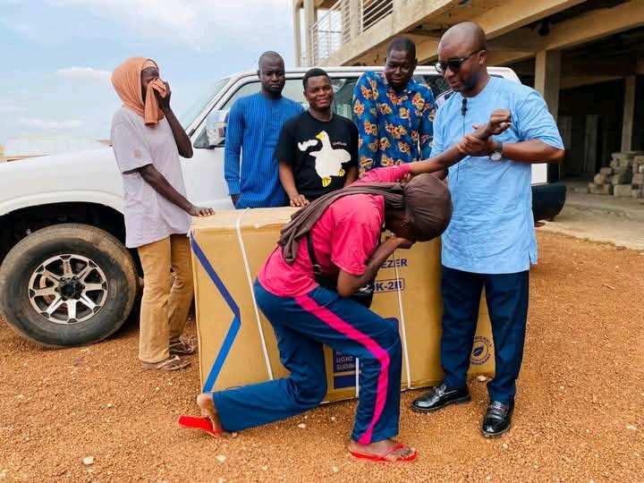 Published on May 11 2025 By Saibu Terry Dasuma Radio CEO, Alhaji Baba Osman Daney has presented a brand-new double-decker Deep freezer to Basira, a young...