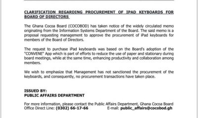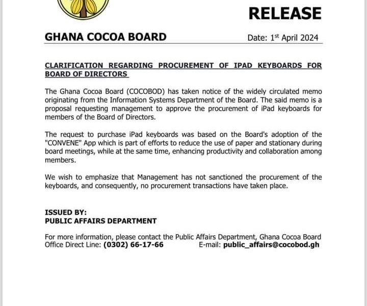 Ghana’s troubled COCOBOD, which decided to buy computer keyboards from a company that reportedly sells the product online for GHc2550 each at GHc4500 rather, says it...