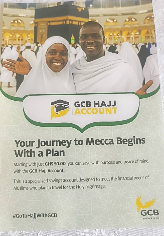 The Hajj Account launched by GCB, is a specialized savings account designed to meet financial needs of Muslims who plan to travel for the annual Holy pilgrimage.