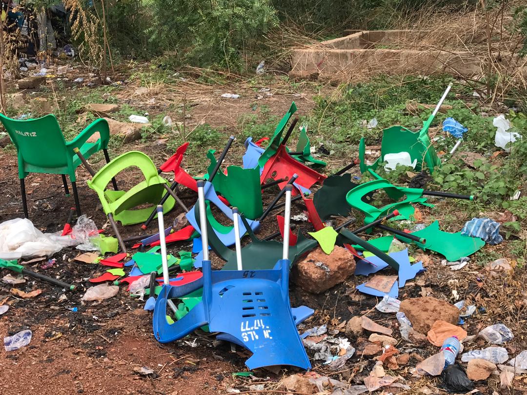 Chaos and anarchy ensued between supporters of the both NDC and NPP, resulting to destruction of plastic chairs which were broken into pieces as a result of the confusion.
