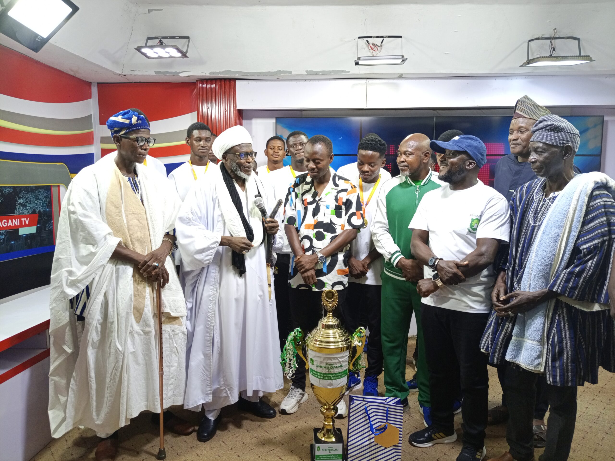 While the players were sharing their reflections of their remarkable success on Sagani TV’s ‘GAME DAY’ Sports Program in Saturday, 11th October, 2025, the Prominent Islamic Cleric, took everyone by surprise including the producers of the program, joining the playing body LIVE in the studio to celebrate their feat and presented them with the trophy as surprise package for their performance.