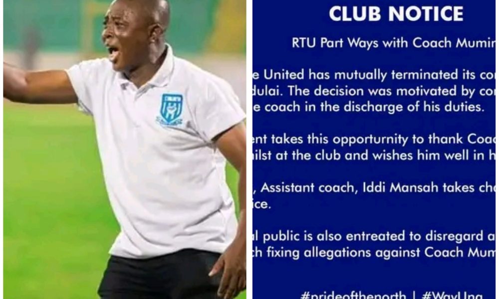 Real Tamale United-RTU has mutually terminated the contract of Head coach Abdulai Abdul Mumin following defeat at home to Nsoatreman FC on Sunday. The club announced...